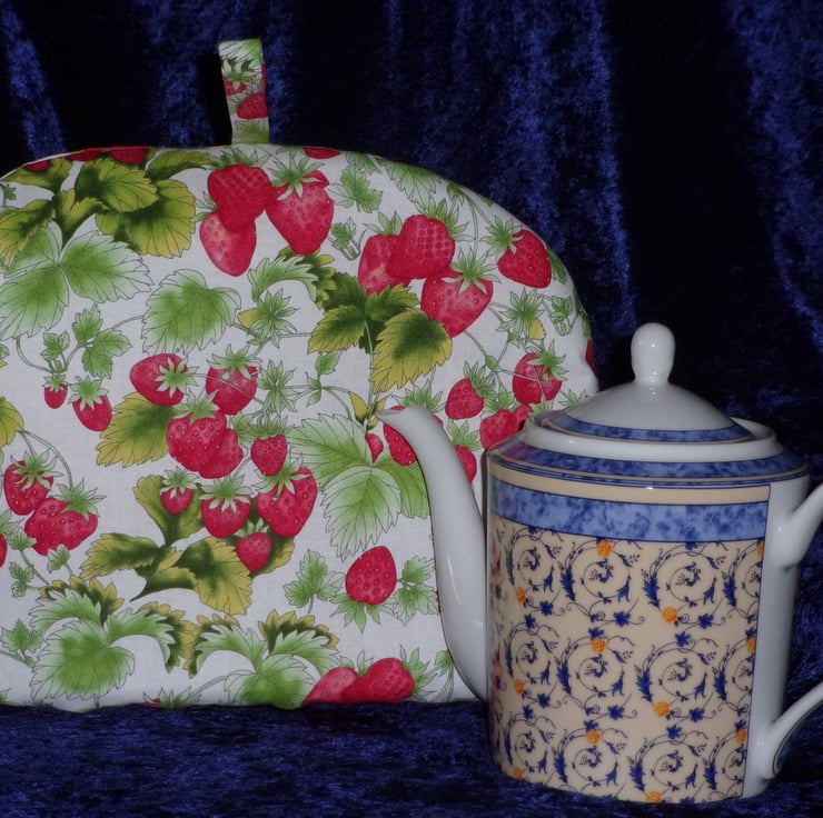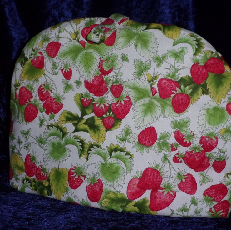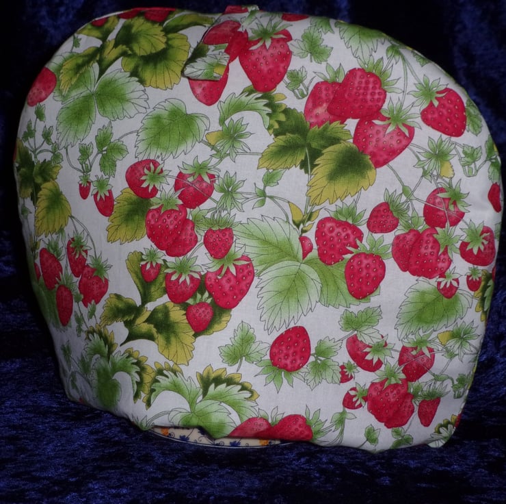 The fabric used is White with Strawberries and leaves and it is lined with wadding, which has been stitched to the cream lining to prevent it from bunching up when it is washed.