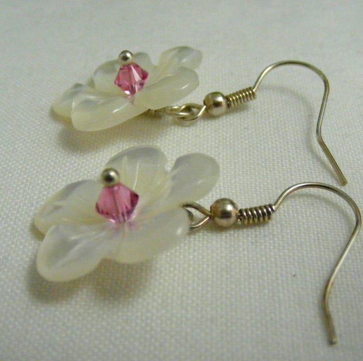 I've handmade this pretty pair of earrings using, 20 mm white mother of pearl flowers,