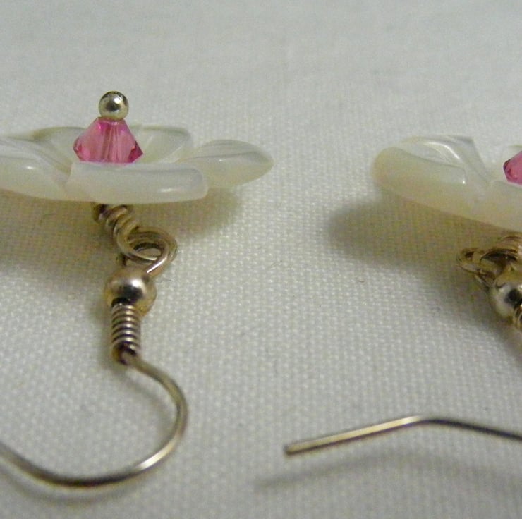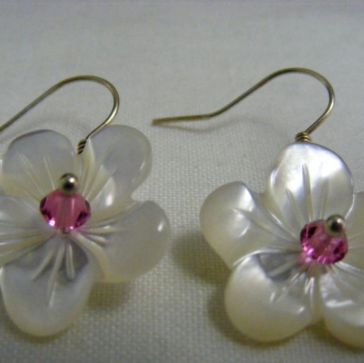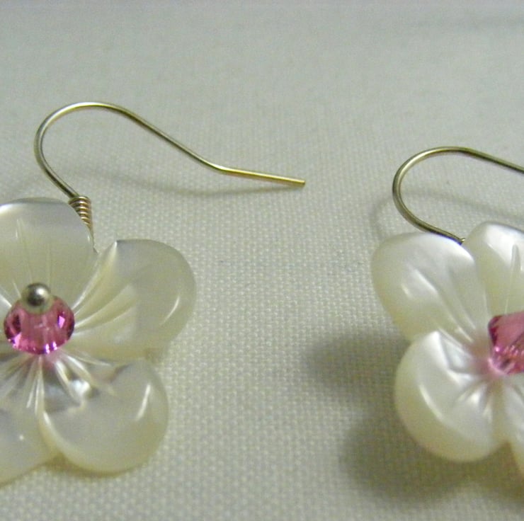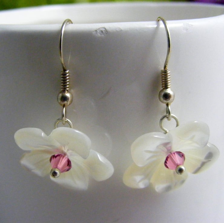 I've handmade this pretty pair of earrings using, 20 mm white mother of pearl flowers,