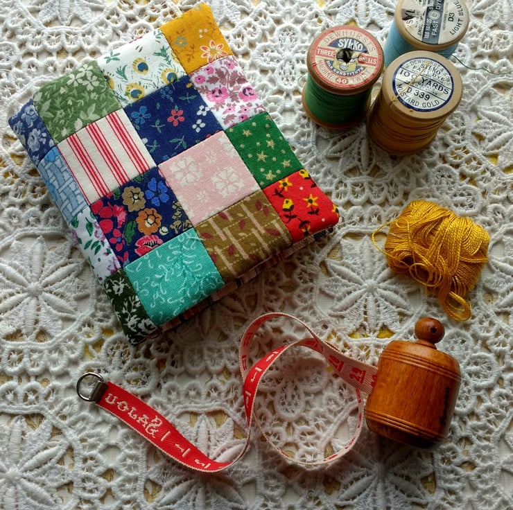Made from an assortment of little cotton squares, this needlecase is the perfect place to store a selection of sewing needles, and gives any workbox a little vintage aesthetic.