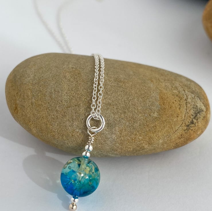 Baltic Sapphire Blue Ombré Amber pendant - made in Scotland.