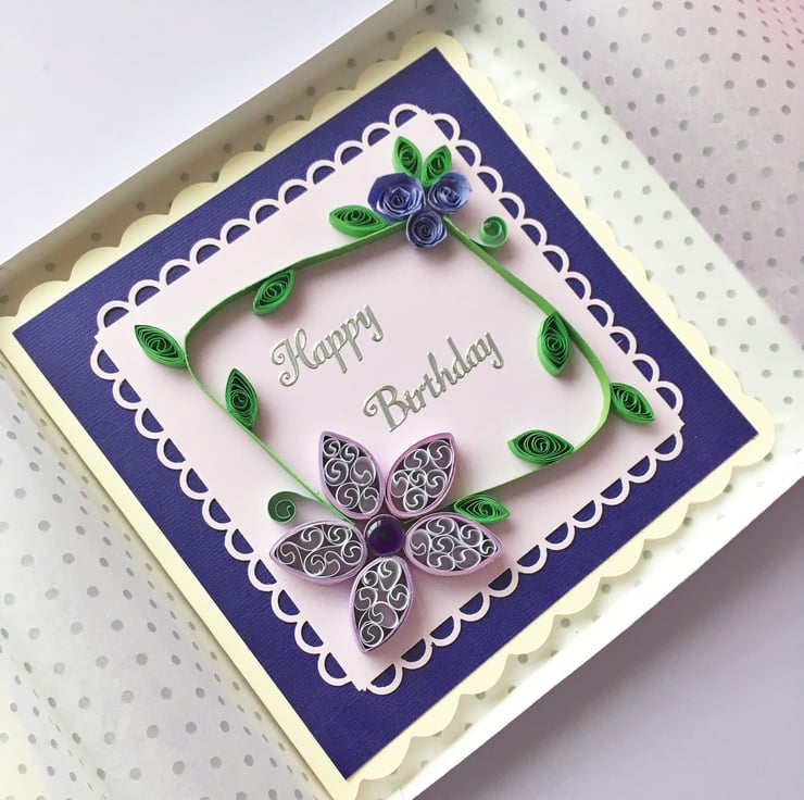 A beautiful hand-quilled birthday card with the option to add a matching gift box for that extra special touch.