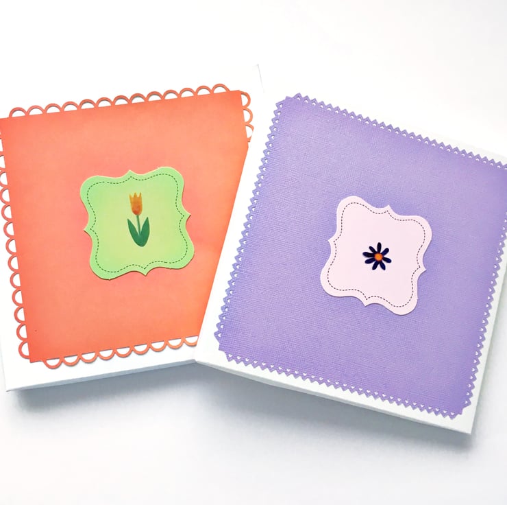 The gift box measures 16 by 16cm and is 1.5 cm deep (approx) so that it can be posted by Large Letter post. As the gift box will be made to match the card it may be different from the examples in the photos.