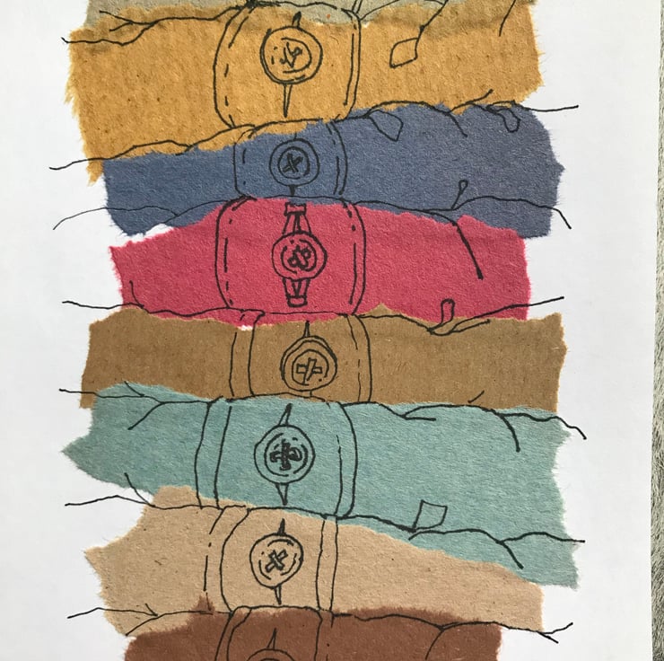 Sent from UK - hand drawn illustration, ink drawing on card over collage