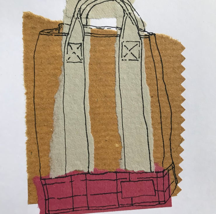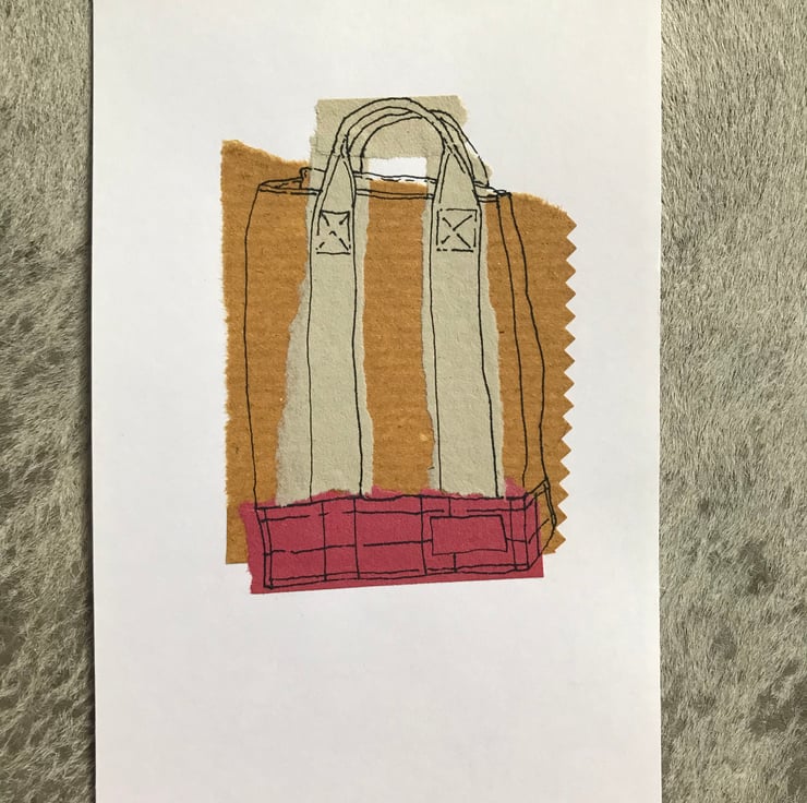 Sent from UK - hand drawn illustration, ink drawing on card over collage
