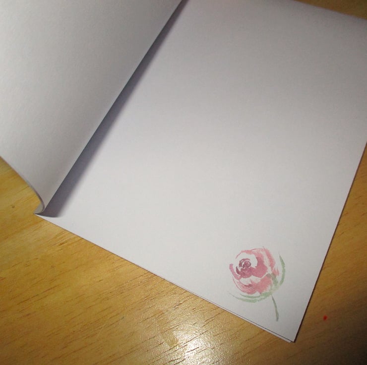 A smaller matching flower is printed on the inside of each notelet, images show example from the light pink bouquet design.