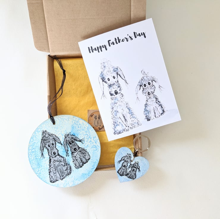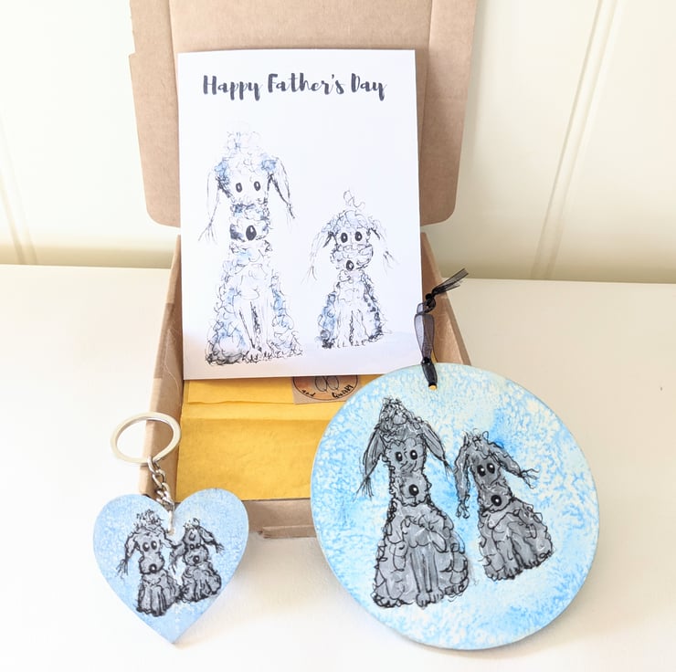 A lovely little giftbox for the dog lover, dog Mum or dad, or friend in your life. It comes with 2 dog related gifts and a card: