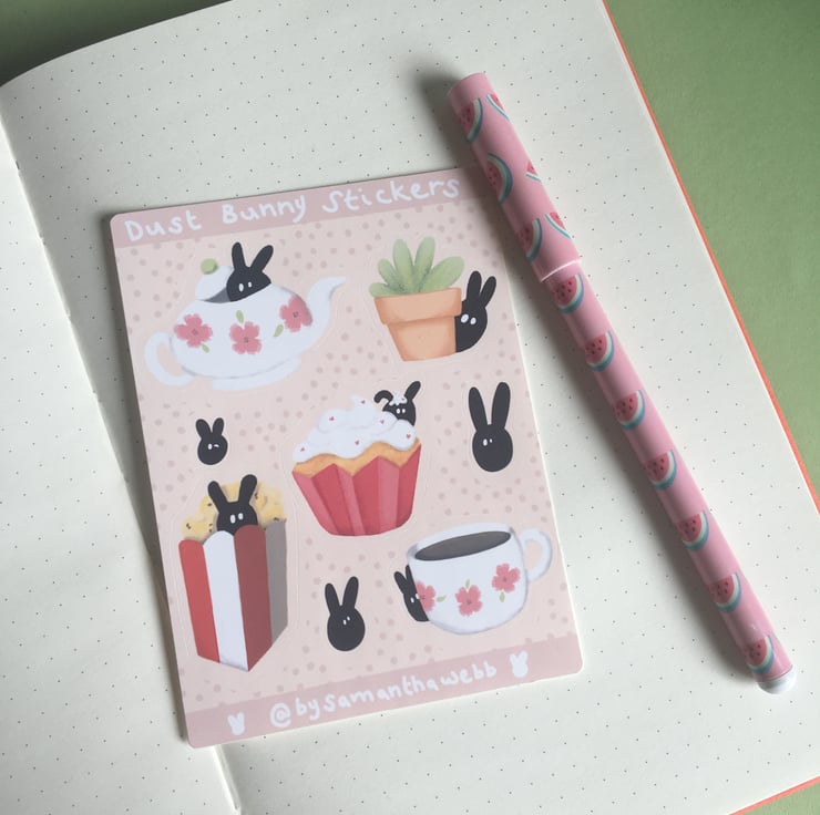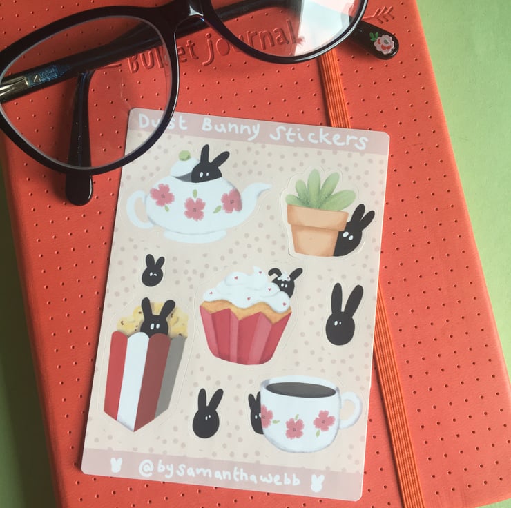 These bunnies are up to mischief! they love to sneak into fancy tea parties and movie nights. They like to hide behind plants and inside your bullet journals and craft projects.