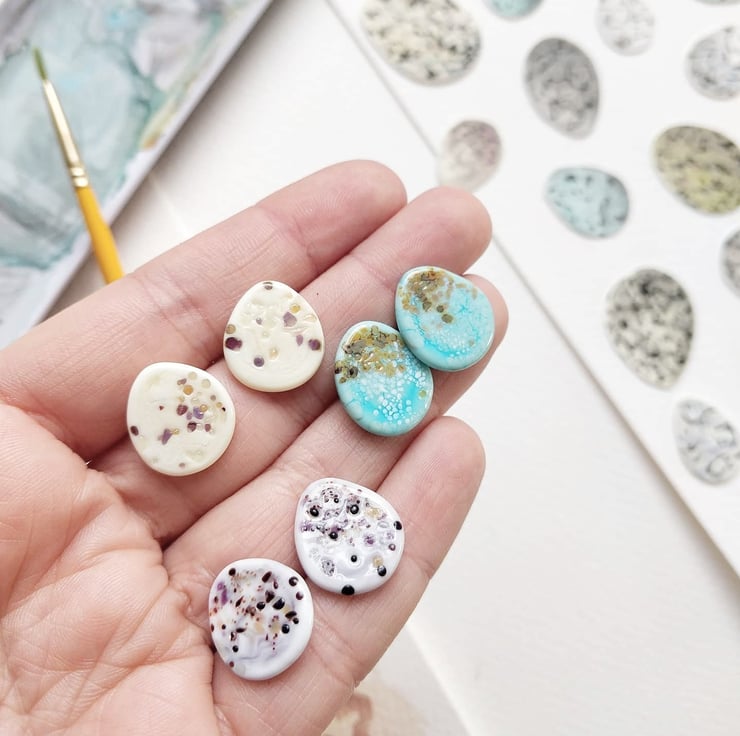 Pictured are a pair of statement glass studs that have evolved from my watercolor impressions of British bird eggs.