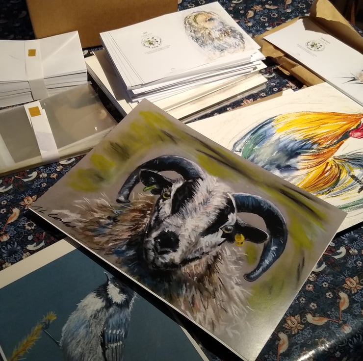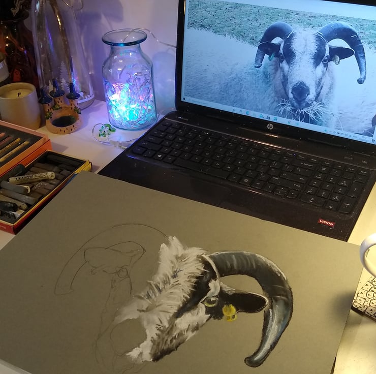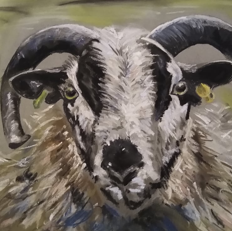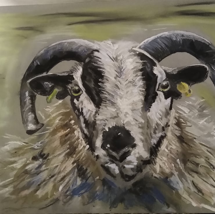 As well as painting with watercolours and drawing I also love using pastels. My neighbour has Badger faced Welsh mountain sheep. They are in our surrounding fields and I absolutely love them! It was whilst out dog walking in their field that I had the idea of doing a portrait of one. I knew pastel would be the perfect medium to use.