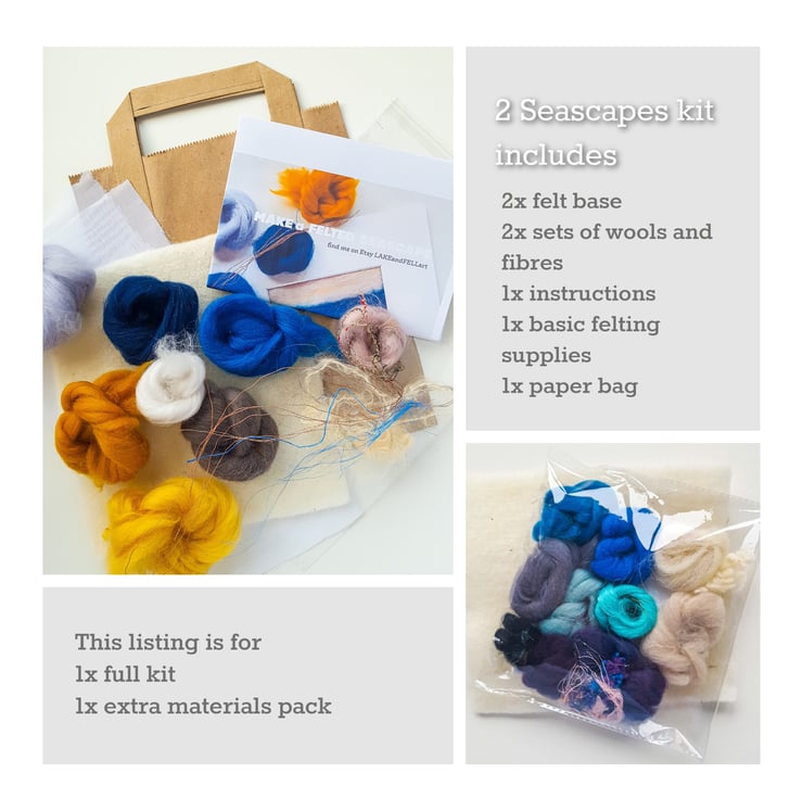 This kit is a version of one of my popular workshops and is a great project to learn the art of wet felting and includes everything you need to create your own felted seascape. With the help of a few items found in your kitchen.