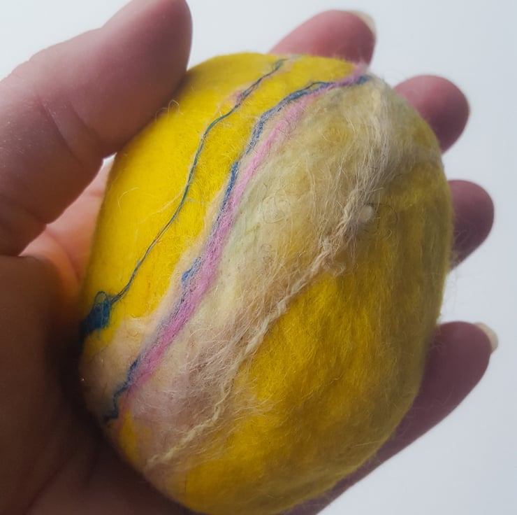 The wool coat by the magical process of wet felting will continue to reduce in size and change shape along with the soap.