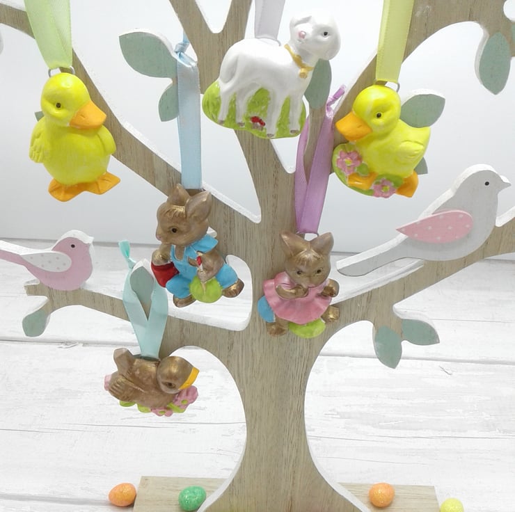 A lovely set of 6 Easter ceramic decorations. Handpainted.