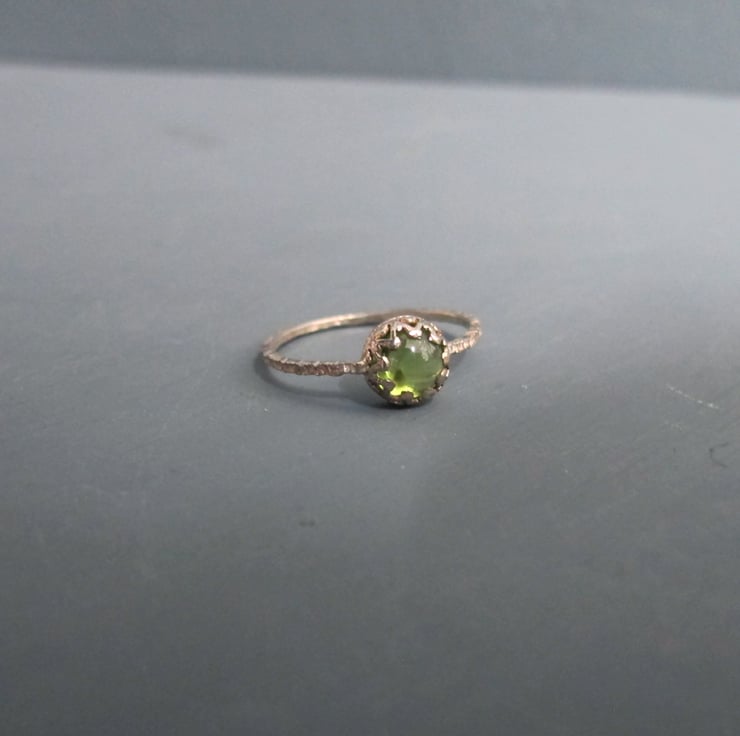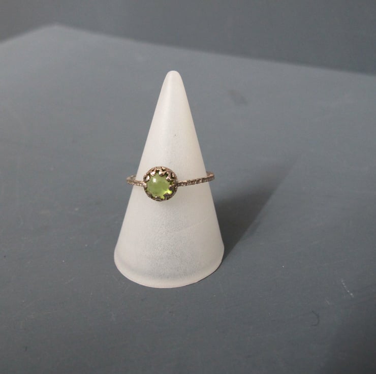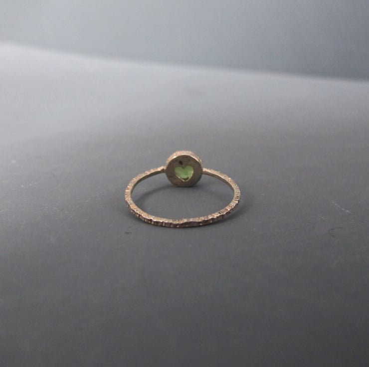 A perfect love token this beautiful peridot gemstone ring has a special hidden detail, a secret heart hidden underneath the gemstones setting so that only the wearer knows its there.