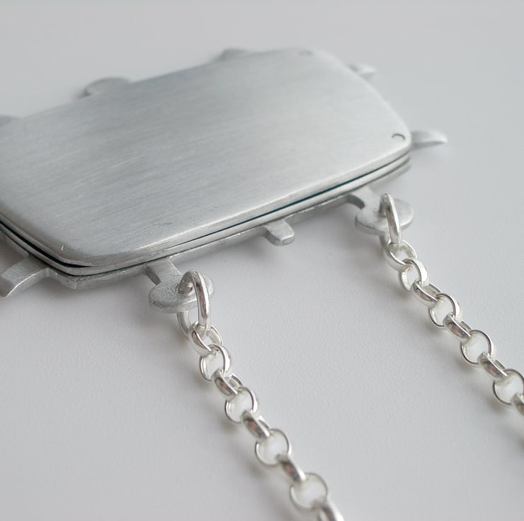 The rectangle measures approximately 45mm x 30mm and hangs from a sturdy sterling silver chain. The whole necklace measures 17" in total and has an extension chain which can lengthen the necklace to 18".