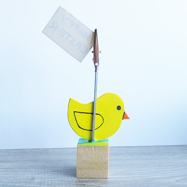 Hand-carved and painted Easter Chick, memo, photo holder.