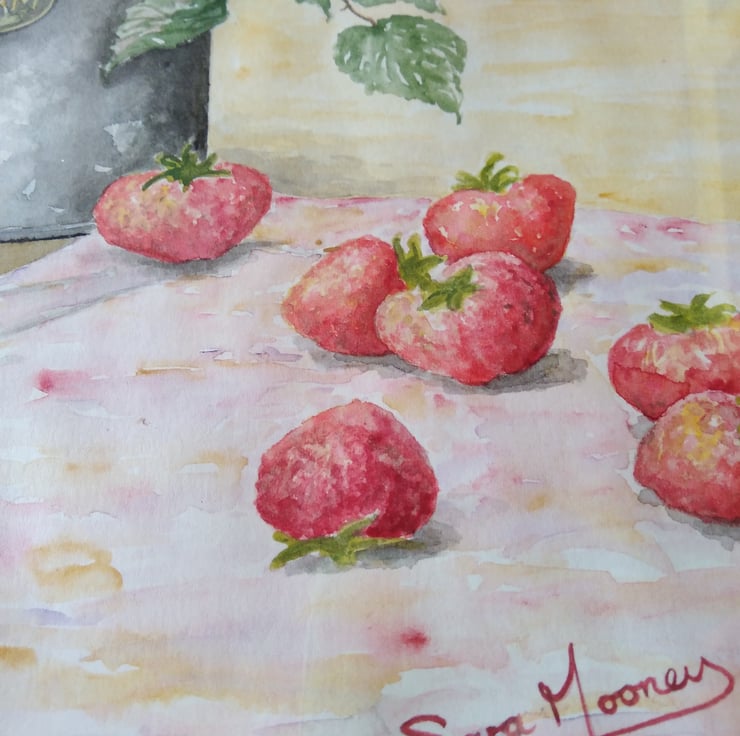 I called this one 'Strawberries and Cream' of course. As the flower container is Tin, the painting could be a 'Tin Wedding Anniversary' gift. That is for 10 years!