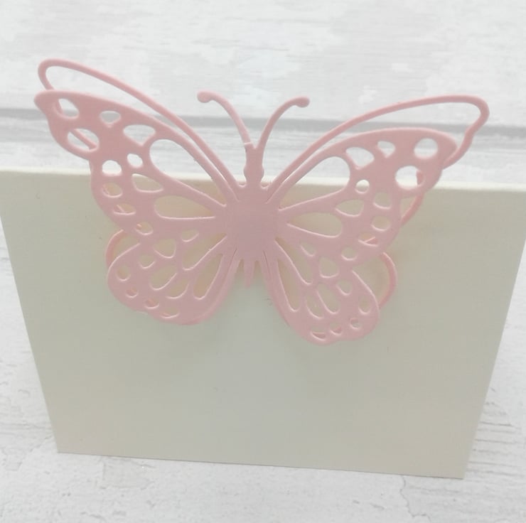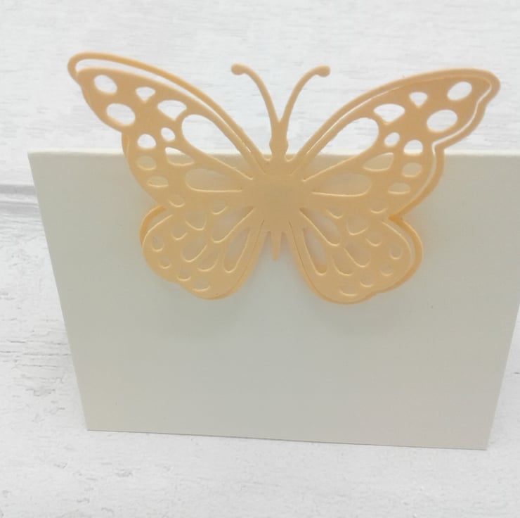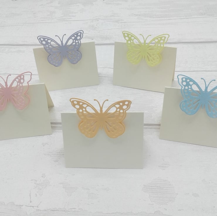 Comprising of ivory place cards with pastel pink, pastel blue, peach, lilac and lemon butterflies (2 of each colour)