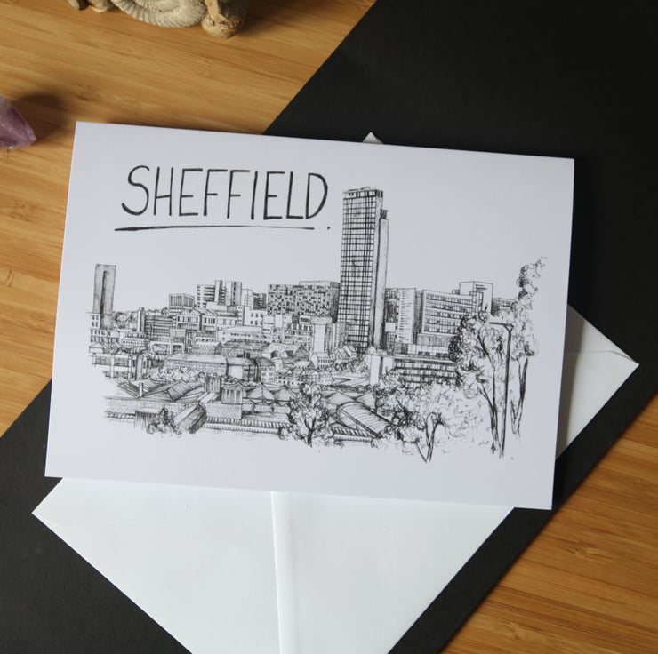 I originally had this design as a print but many people were asking for greetings card versions. So thats why I ended up with this version, plus there were many requests for Sheffield to be added to the collectable. So after a day trip, I got this illustration together.