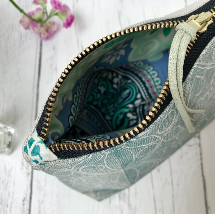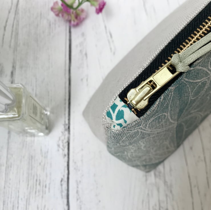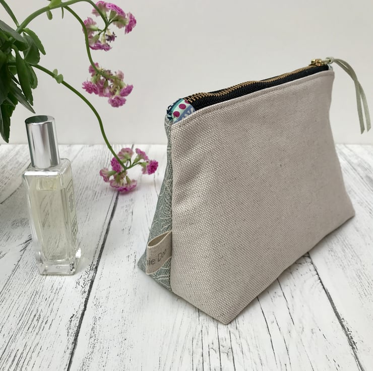 A lovely hand printed Zipped Cosmetic Bag. This would make an ideal gift or a treat for yourself and is perfect for carrying cosmetics or jewellery
