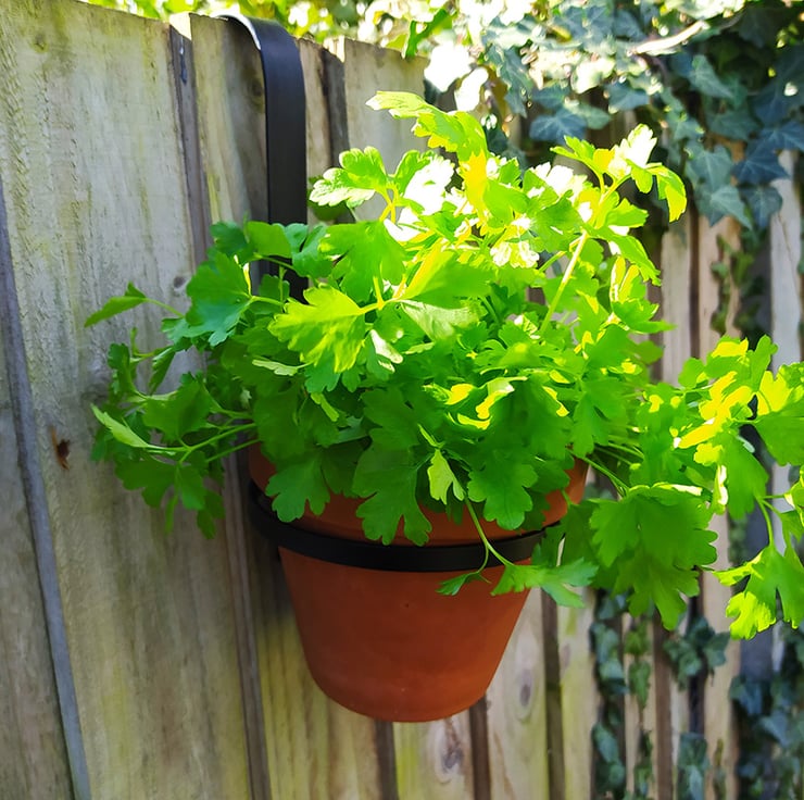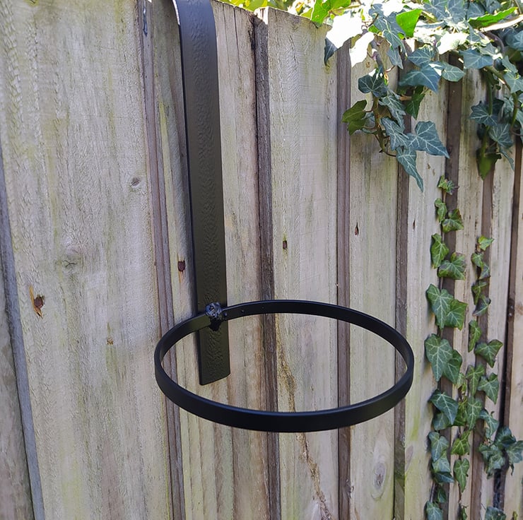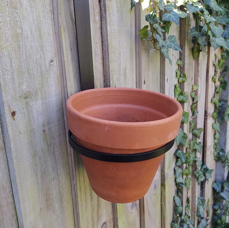 Hand made from steel and finished in black. 'Fence Hanging' pot holder suitable for 6" terracotta pots. Made from raw, finished with a durable black coating. Hang along fences, balcony's etc, move as desired. Ideal for balcony flowers, herbs and trailing plants. Allows plants to be easily positioned in and out of direct sunlight. Pot and plant not included. ©Urban Native Design 2021