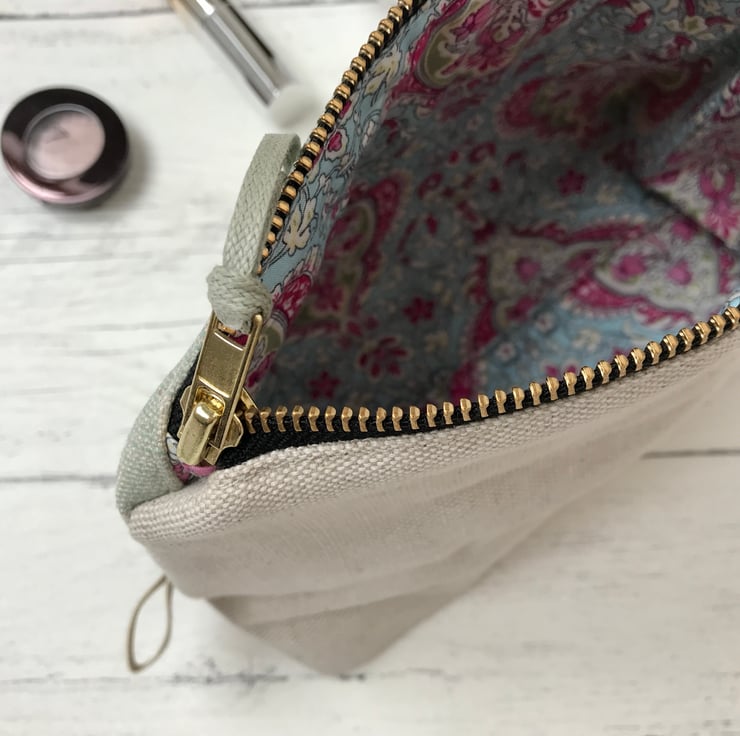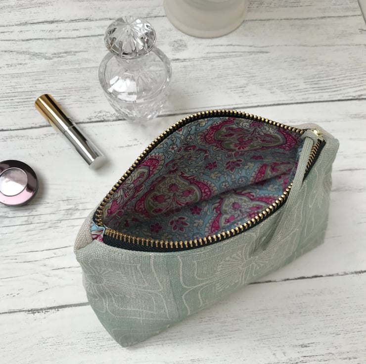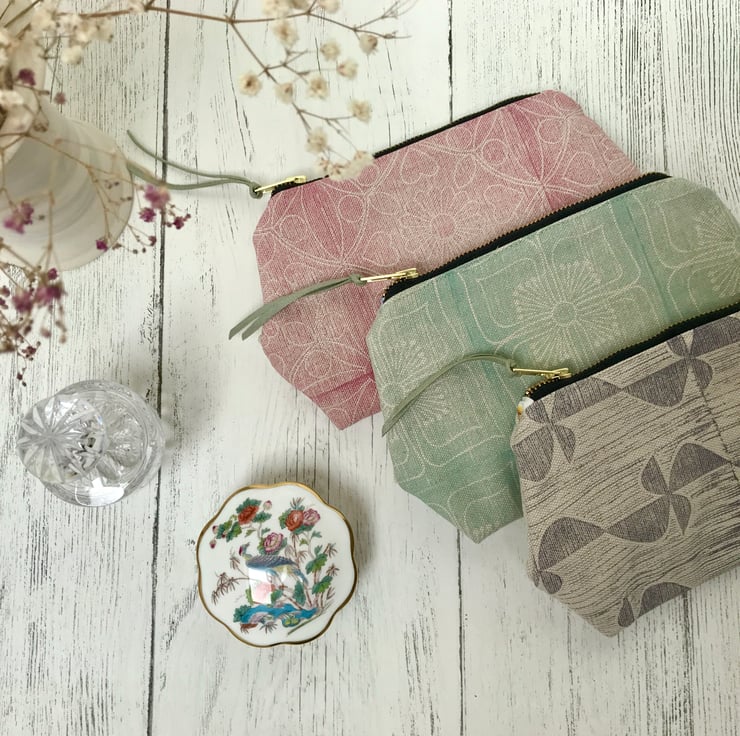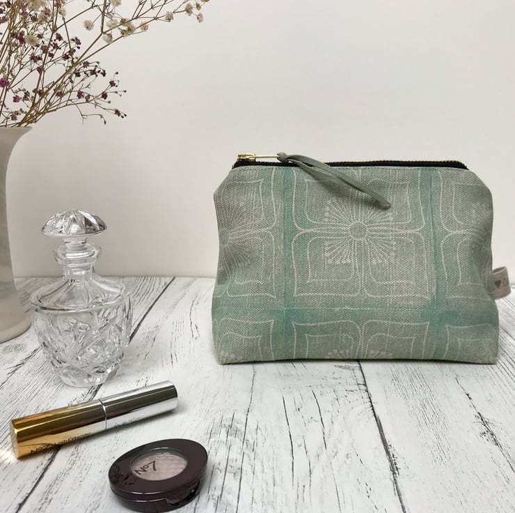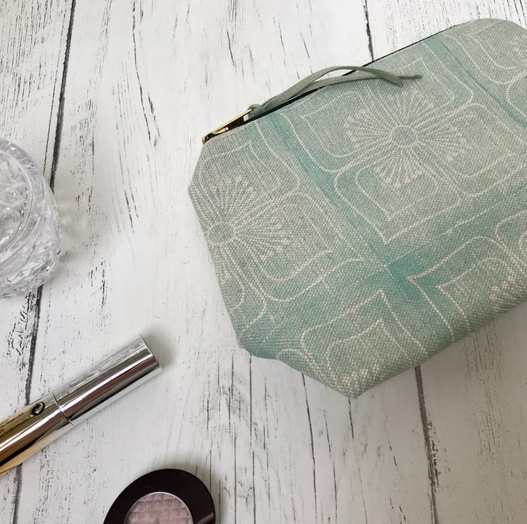 A lovely hand printed Zipped Cosmetic Bag. This would make an ideal gift or a treat for yourself and is perfect for carrying cosmetics or jewellery