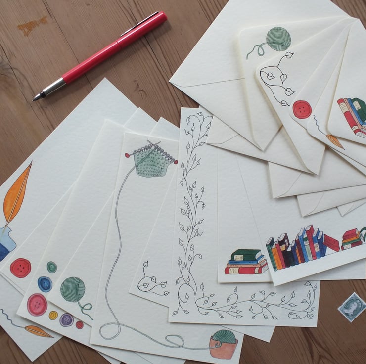 This set of letter paper and envelopes was created using my own original watercolours. It contains five front sheets, five continuation sheets and five envelopes but you can mix and match my five letter paper designs. I write long letters and always feel blank continuation paper is a bit of a disappointment, so the continuation sheets in my sets all have smaller, related designs on them. Just let me know what designs you would like in the ‘Notes to Seller’ box at checkout.