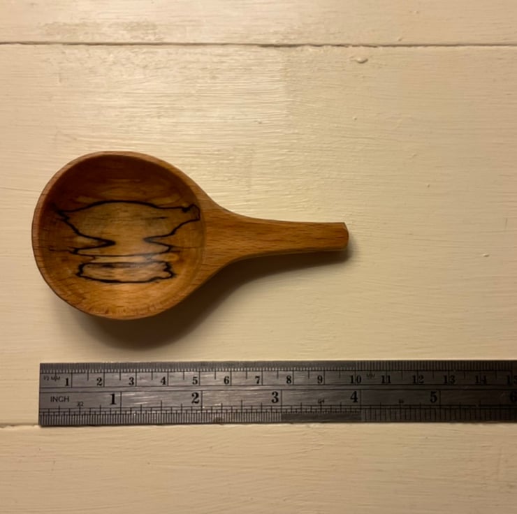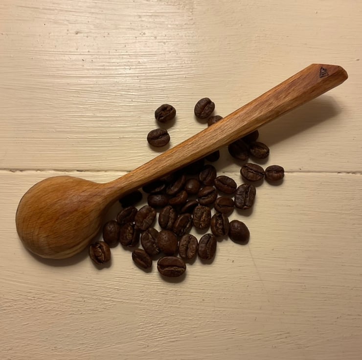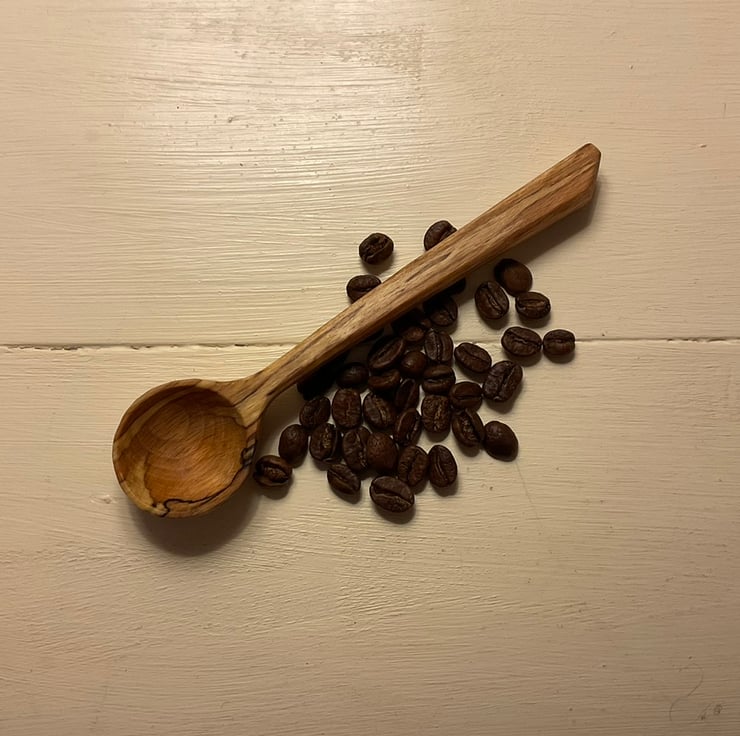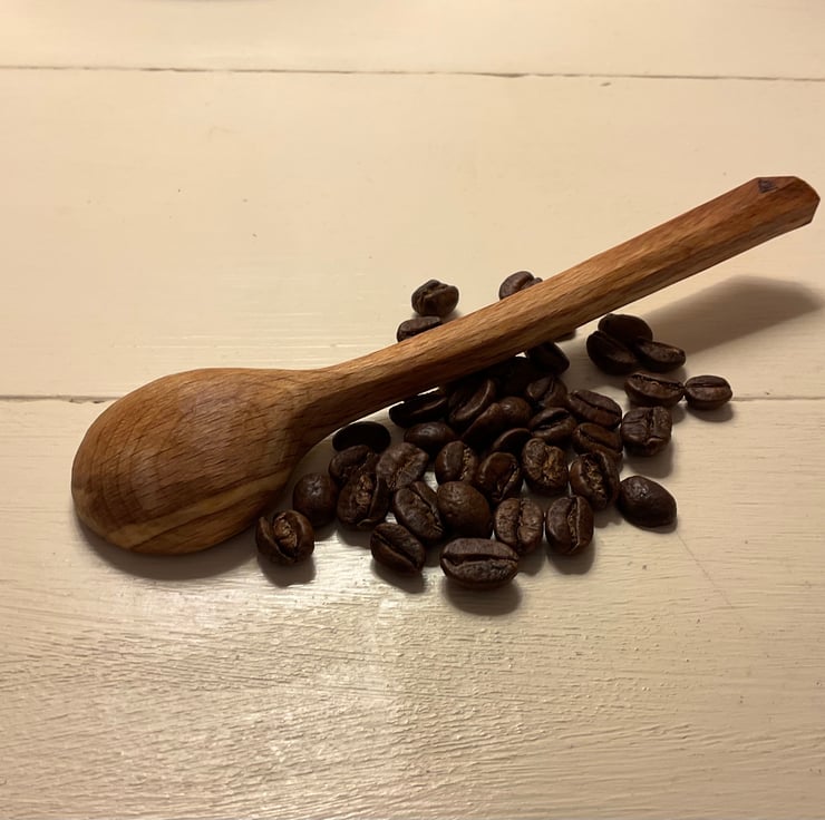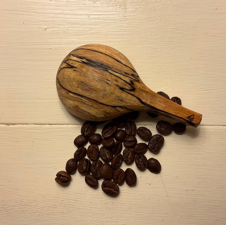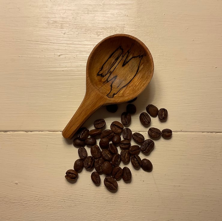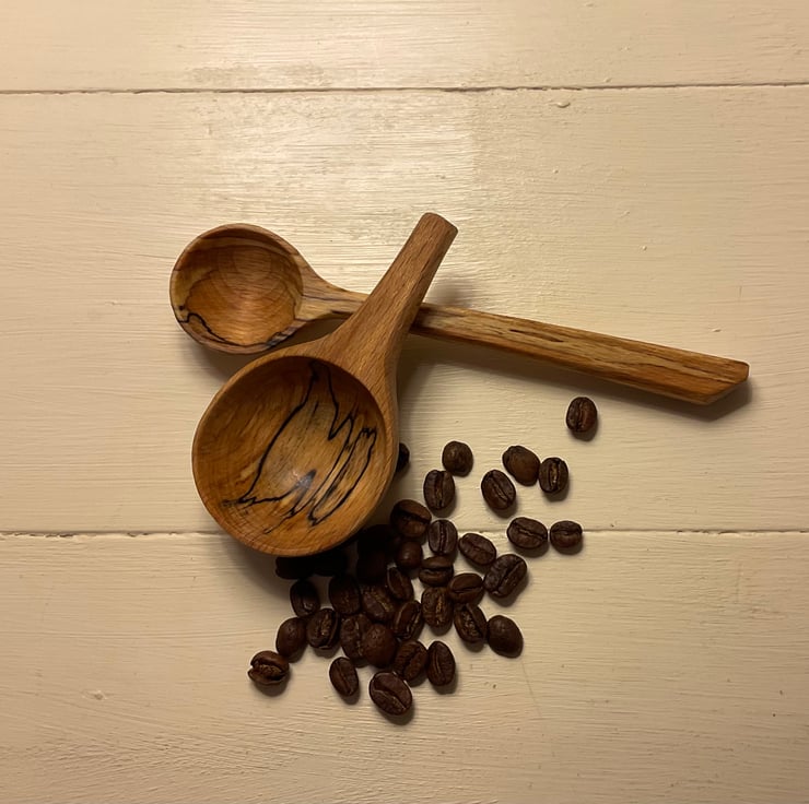 This pair of beech scoops originated from the same log and it seemed right to keep them in a set as they look great together. They would make a wonderful gift to someone special and yes that could be yourself! The markings on both scoops are stunning and they’ve been carved with a beautiful smooth finish. The long handled scoop is approx 1tsp as a level measure so perfect for a sugar bowl or similar and the bigger scoop is a mighty 1.5Tbsp perfect for heaping coffee, loose tea or anything else needing scooped! Possibly the ultimate set for a caffeine lover.
