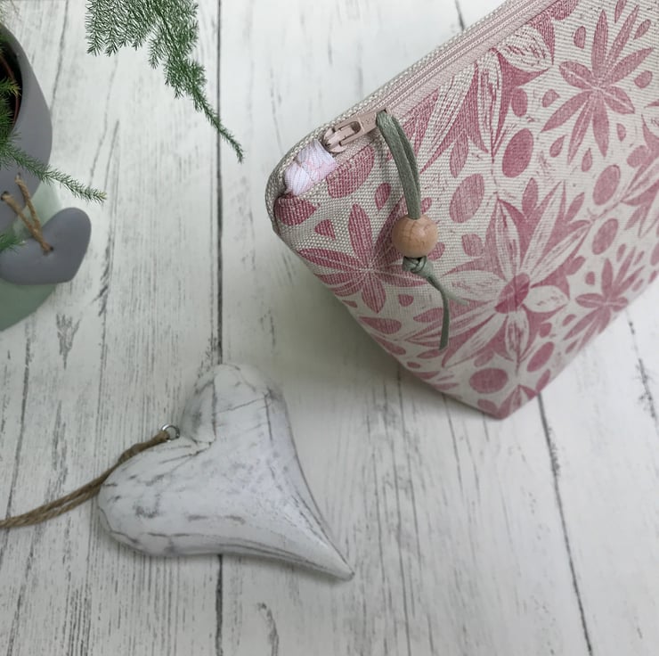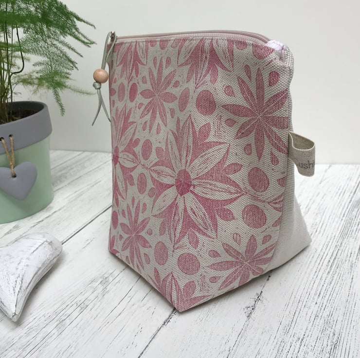 A lovely hand printed zipped Wash bag. This would make an ideal gift or a treat for yourself and is perfect for carrying toiletries and make up