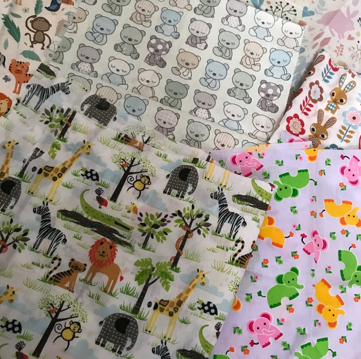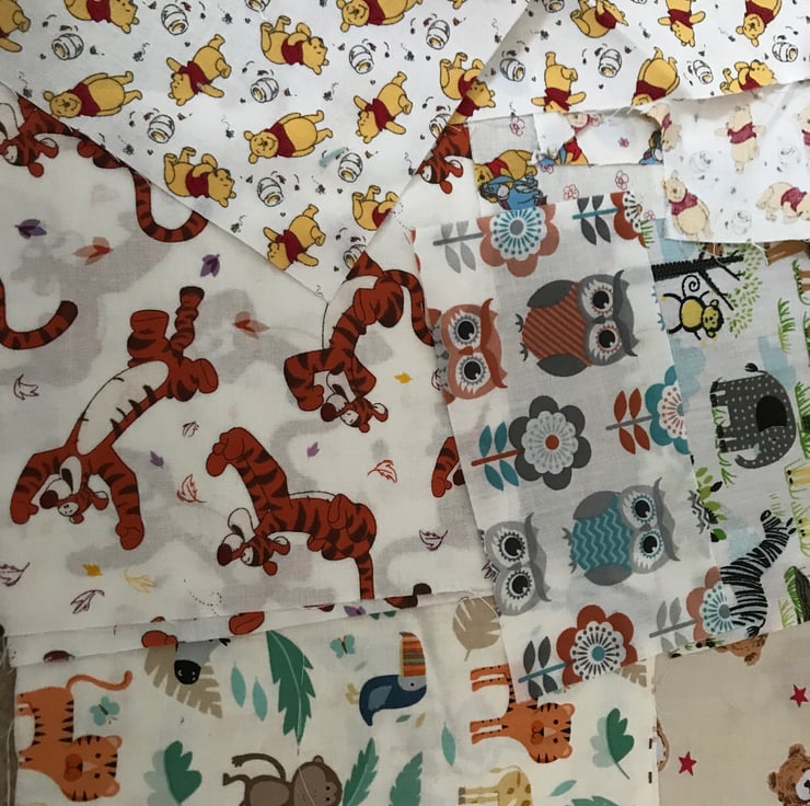 Oddments of lovely nursery fabrics perfect for smaller projects or patchwork, including Pooh and friends fabrics