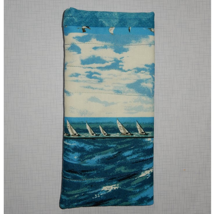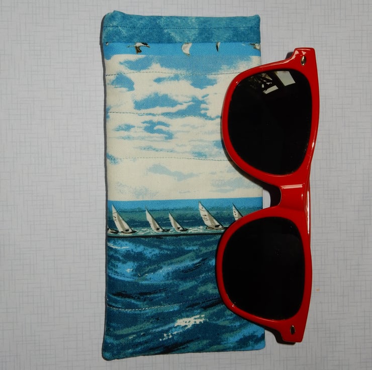 The yachts are sailing by on the sea, are they having a race? The case is made from cotton fabric with a layer of wadding for protection and a toning trim and lining. This is a slip in style glasses case, if you require a case which fastens please view my other listings.