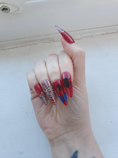 Spiderman Press On Nails. Comic False Nails.
