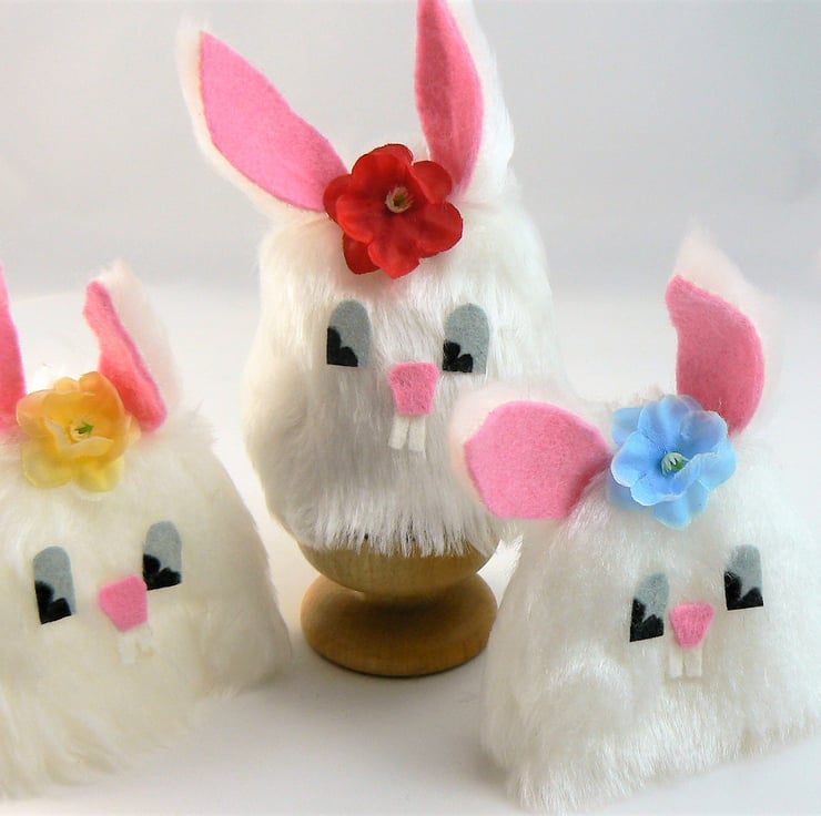 This bunny egg cosy will keep your egg warm at breakfast time and will look equally at home when not in use sitting on a empty egg cup on a dresser or shelf in the kitchen.