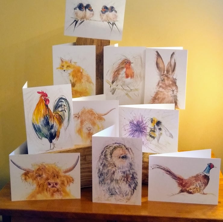 Mixed pack of 10 greetings cards , wildlife and farm animals.