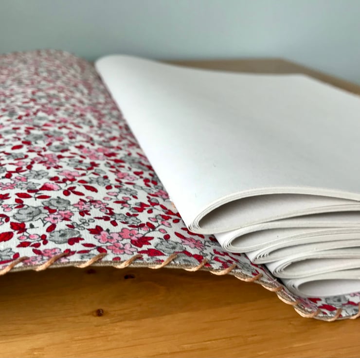 All lined with a gorgeous floral (or non floral) fabric and filled with plain paper, lined paper, recycled paper or watercolour paper.