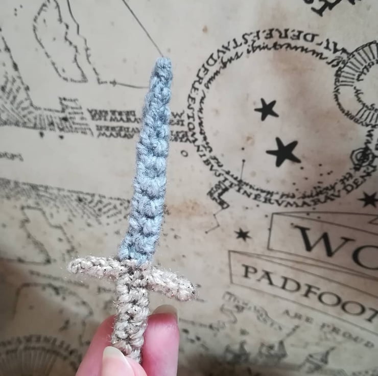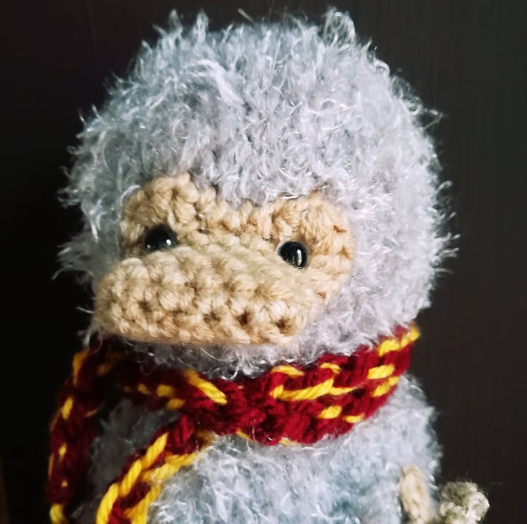 This special edition gryffindor Niffler is made from a lovely soft grey yarn. He comes with a little scarf, gold coin and sword of Griffindor.