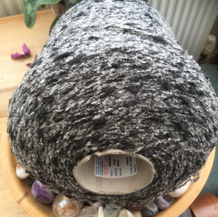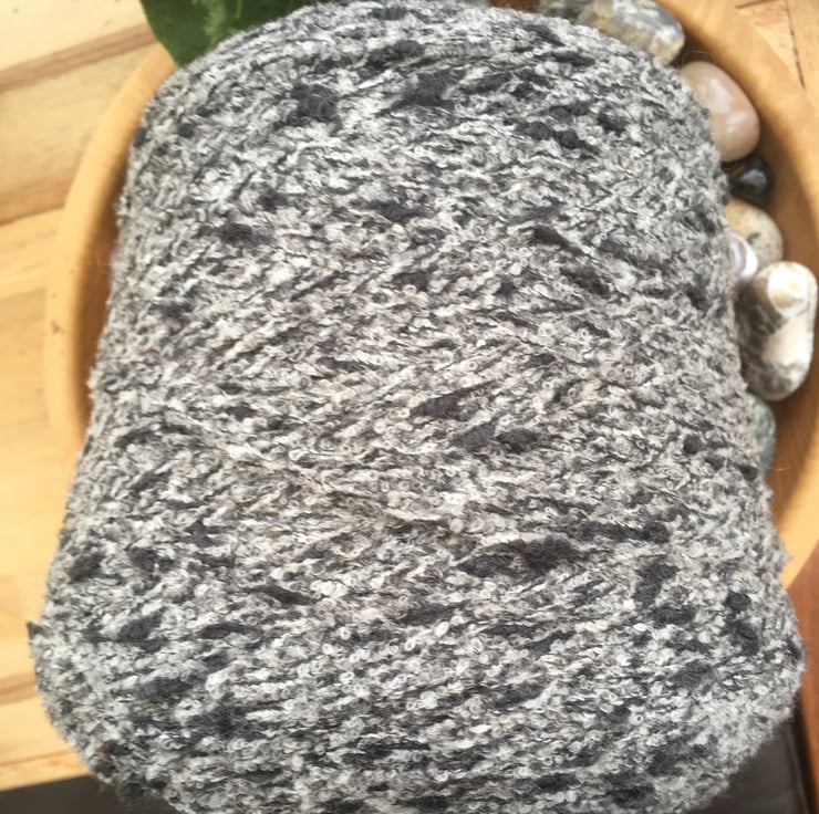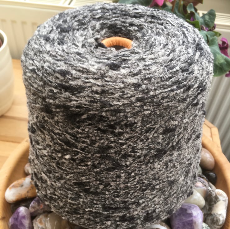 Approx 400g to 500g cone 100% Italian Zegna Baruffa Lane Borgosesia Wool in a mottled slate grey white and black, suitable for both machine and hand knitting or crochet projects.