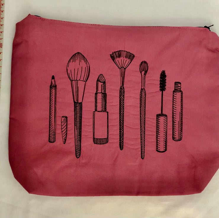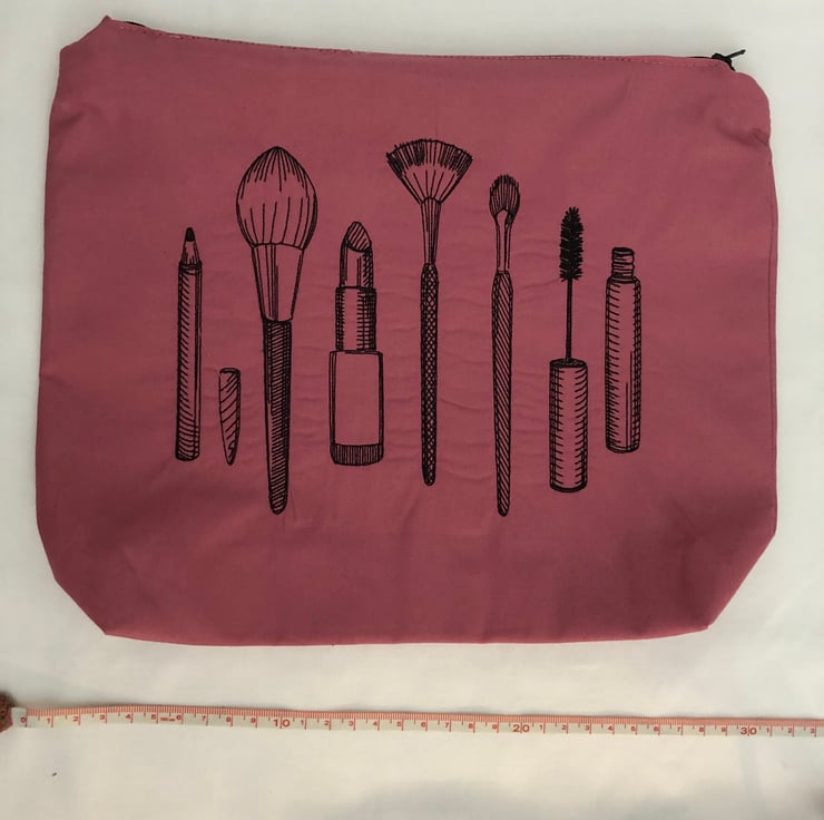 This bag is made from cotton, lined, has an embroidered design on one side and has a zip opening.