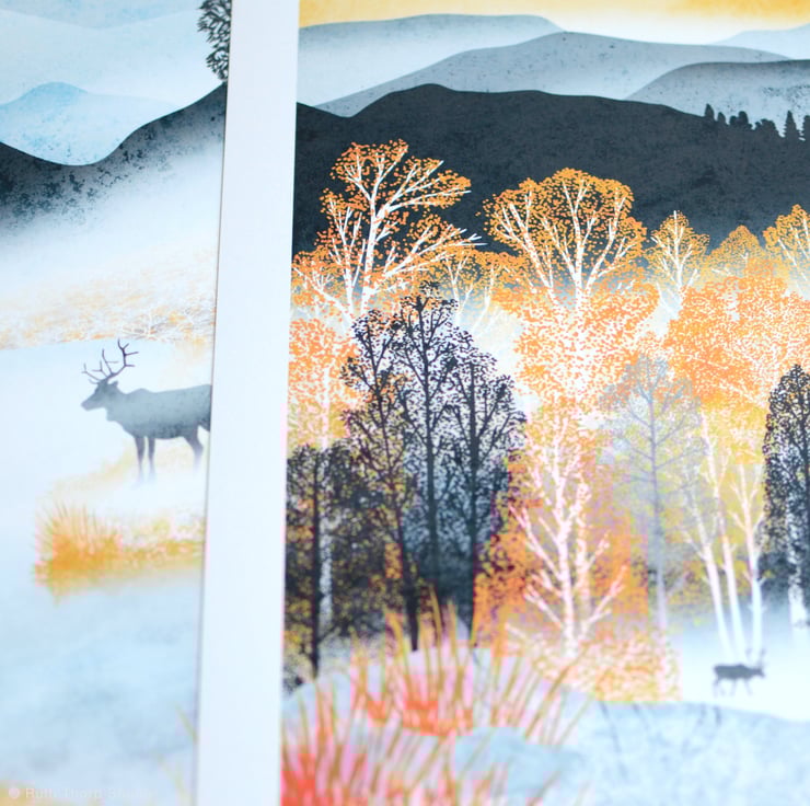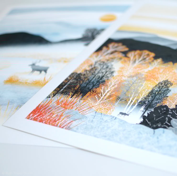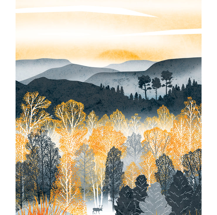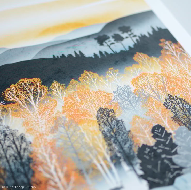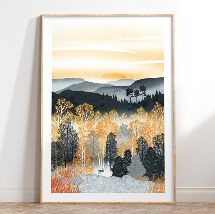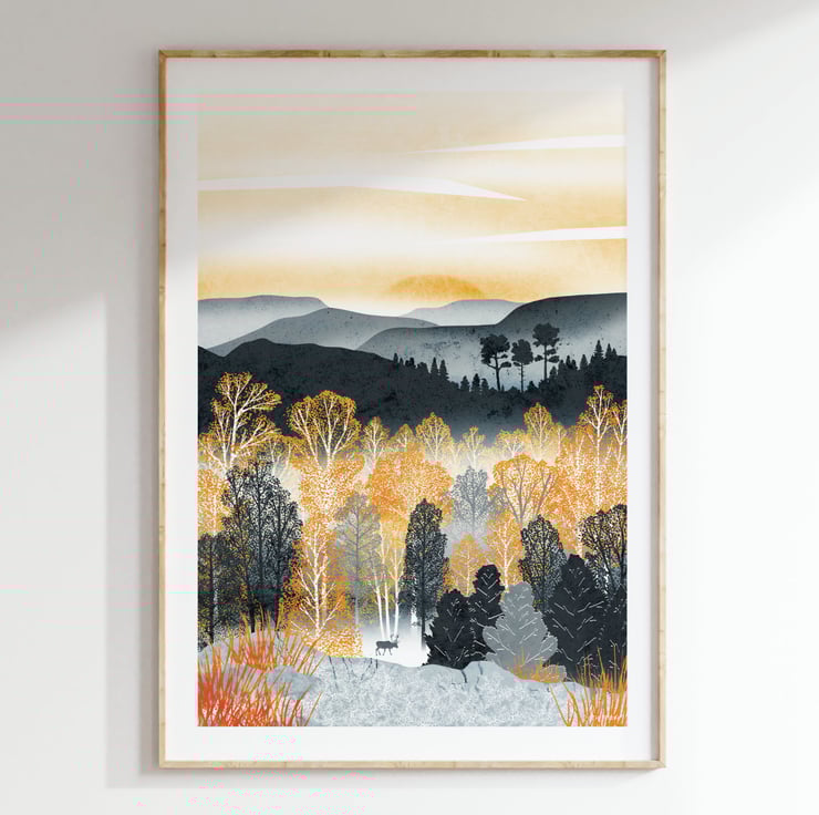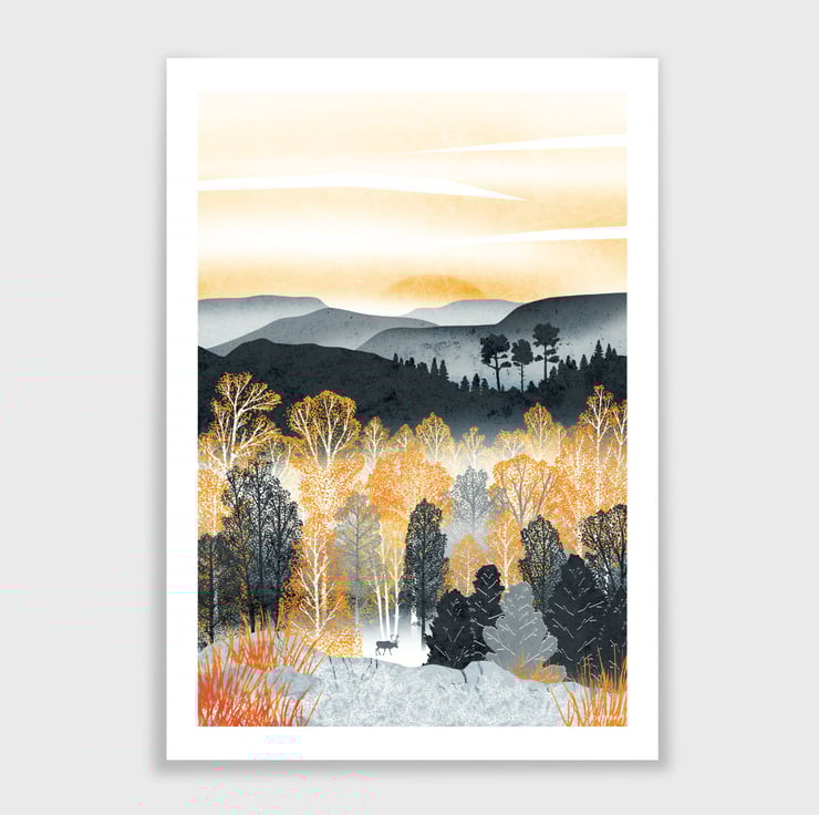 Inspired by the incredible changing Autumn colours of the aspen and birch forests of the Cairngorms and Scottish Highlands and forming part of my Golden Forest Collection.