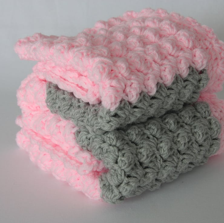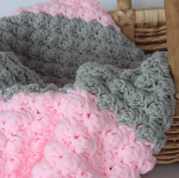 I make this using two strands of double knitting at one time creating a thick, soft, luxurious blanket you just want to snuggle baby up in.