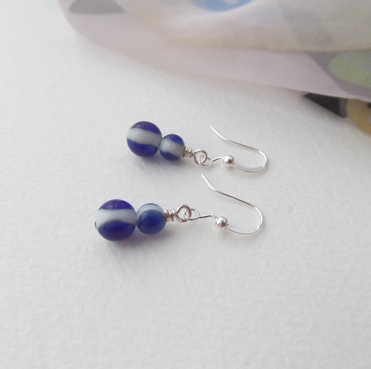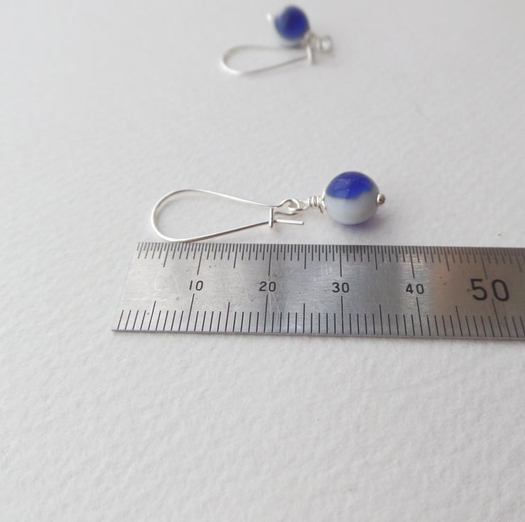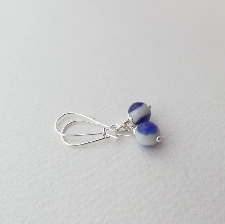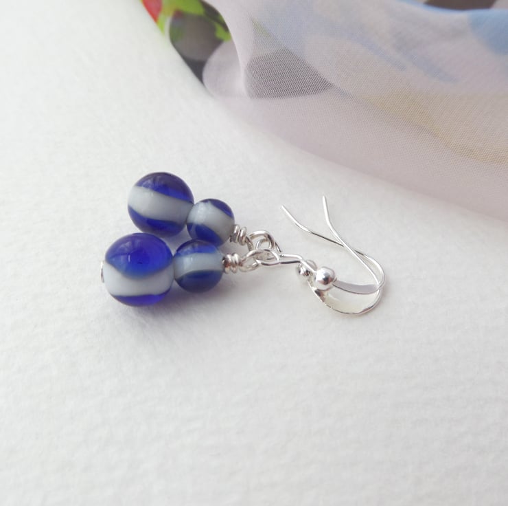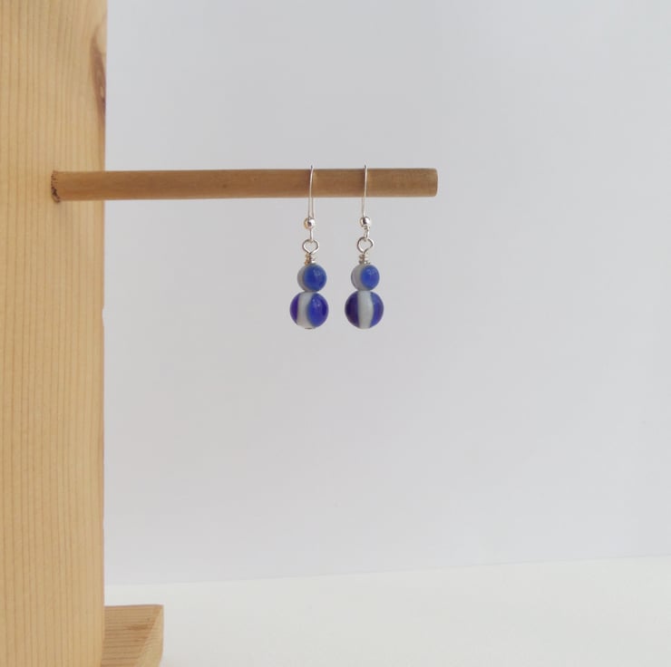A choice of silver, blue and white earrings.