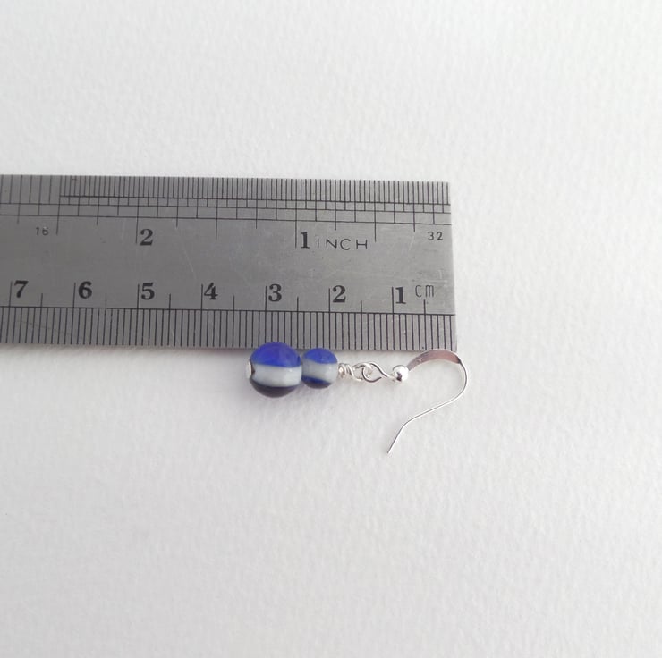 Bright blue and white striped glass beads.