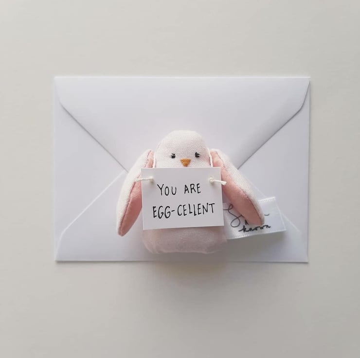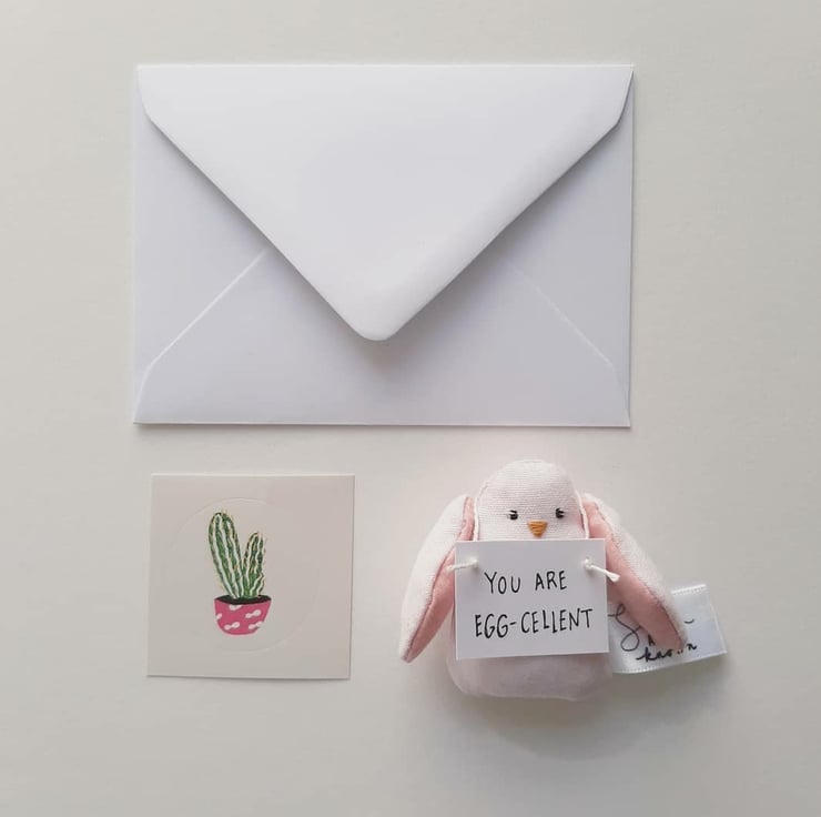 - Please note this is a sample photo of what the chick looks like so it may vary slightly due to it being hand sewn, as well as the sticker with the envelope.