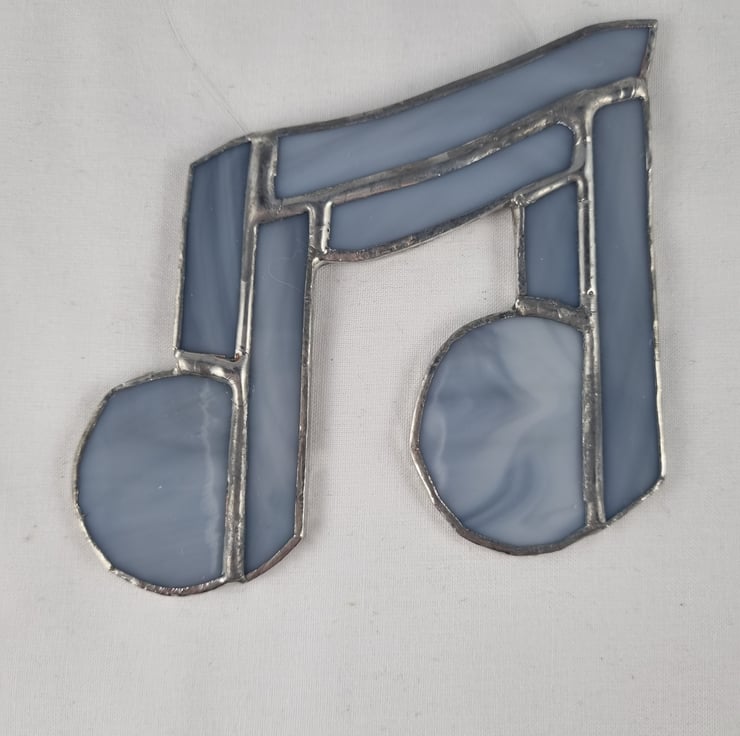 This double note is made in grey glass and has two rings and invisible thread for hanging.