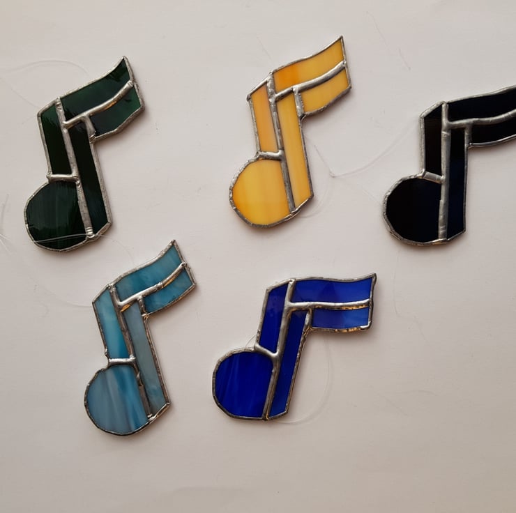 If music be the food of love play on. My single note is handmade using the copper foil technique.