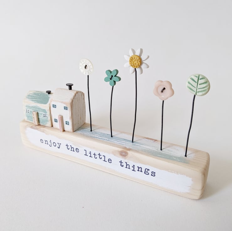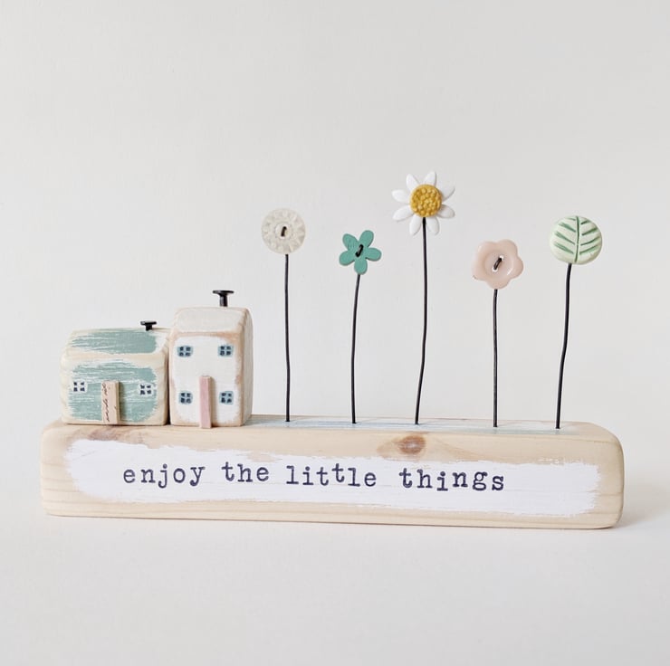 Hand stamped on the front are the words 'Enjoy the little things'.