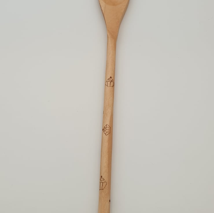 The perfect gift for someone who loves baking this lovely wooden spoon has been handburnt, using the art of pyrography, with the words 'Born to bake'' and a handburnt cupcake. Cupcakes have also been woodburned over the handle. The spoon has been finished with food grade wood oil for protection.
