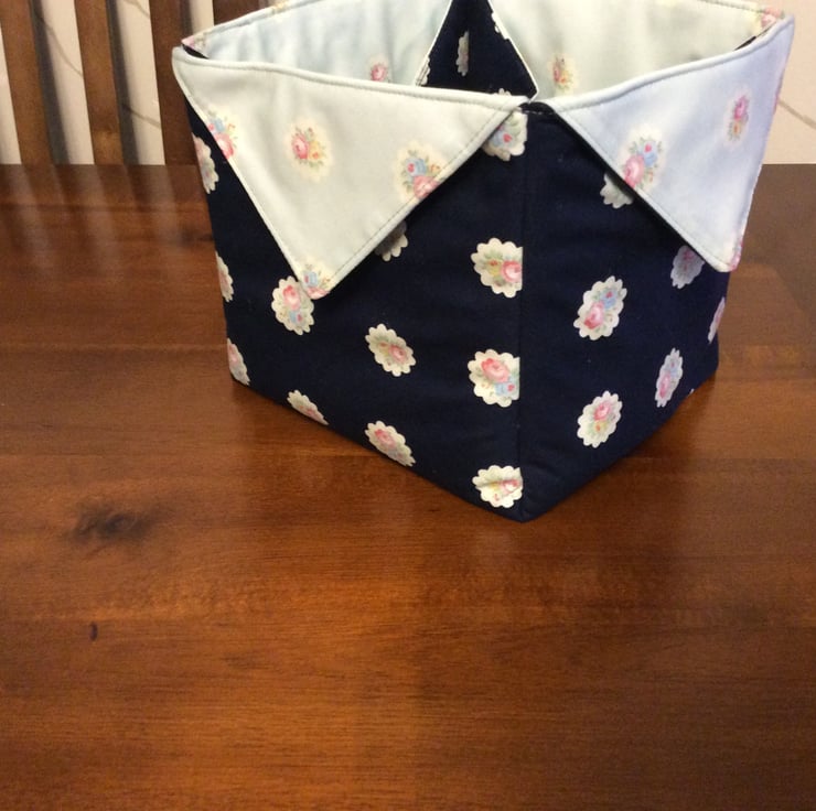 I’ve sewn this organiser/ storage basket with floral cotton fabric inside and outside. It is soft and from natural fabric.