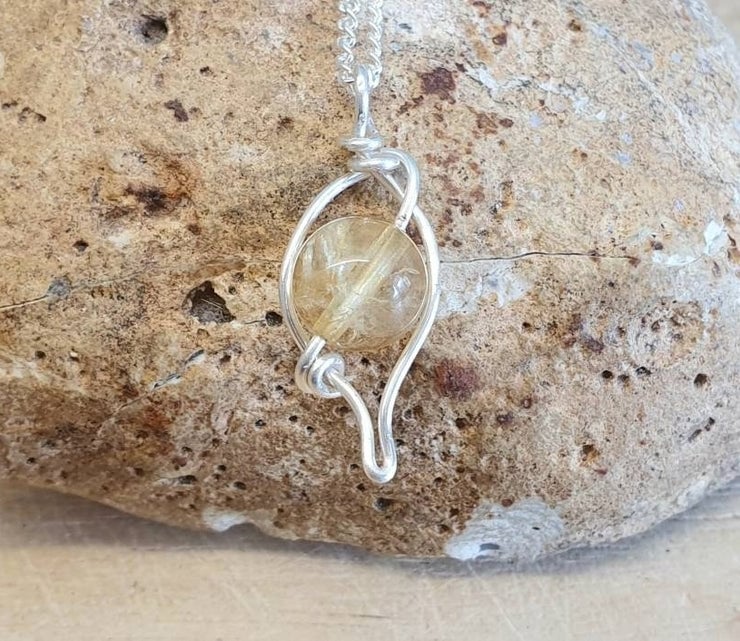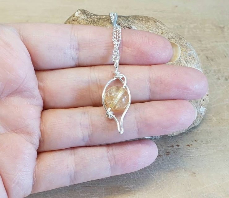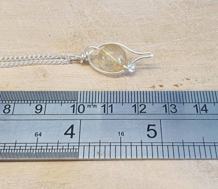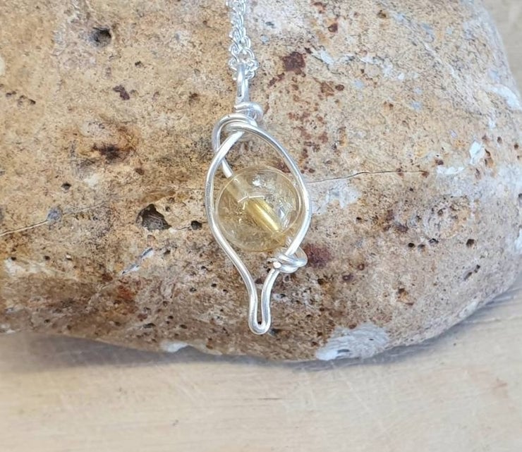This is a small citrine leaf pendant necklace which I have wire wrapped with silver plated wire.