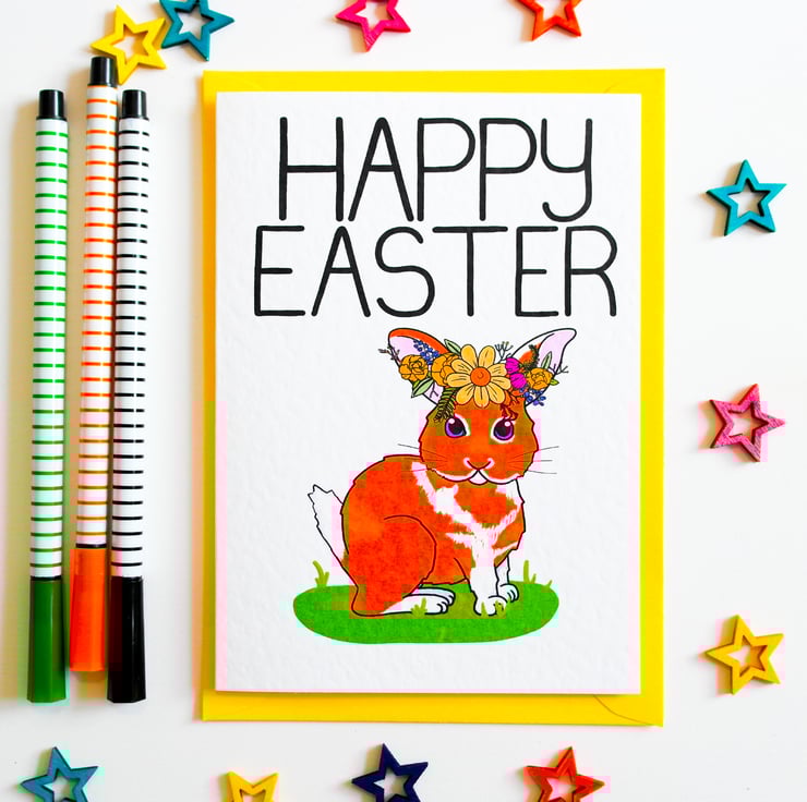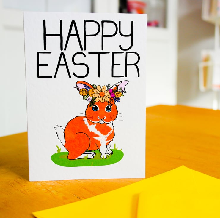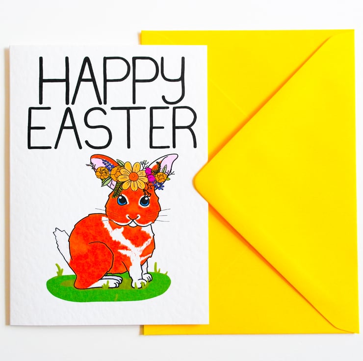 A cute Easter Card to send to your Loved ones with an adorable Easter Bunny adorned with a Spring Floral Crown to celebrate the magical Easter
